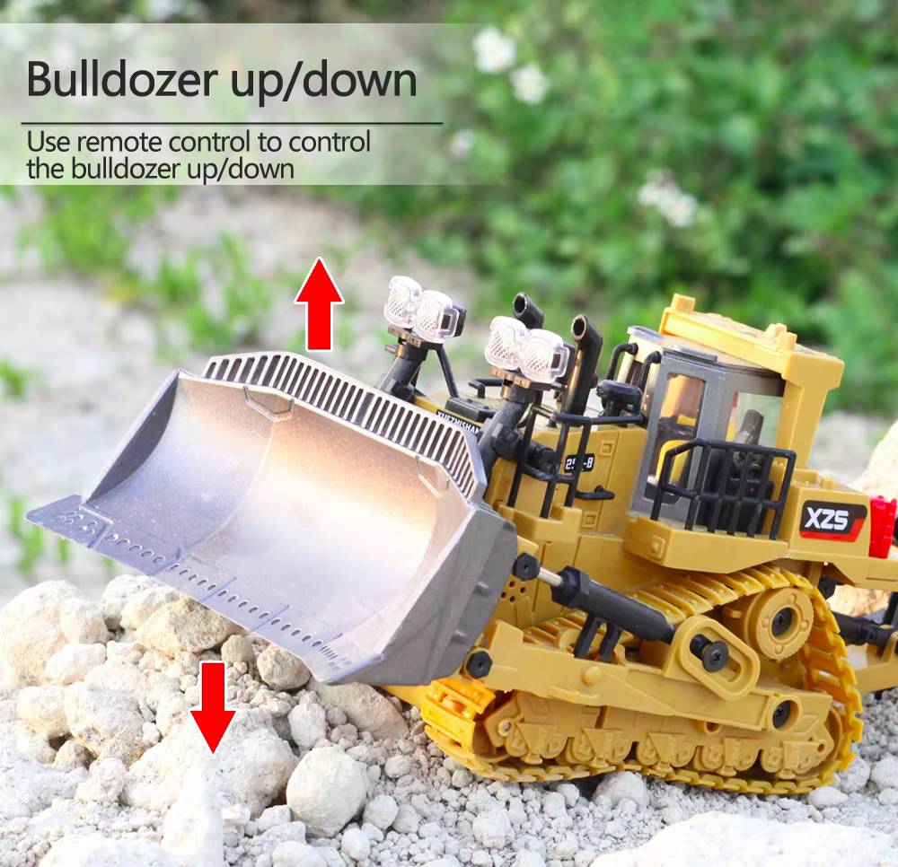 - Αυτό το τηλεκατευθυνόμενο μηχανολογικό όχημα-μπουλντόζα διαθέτει ένα ισχυρό σύστημα ελέγχου 9 καναλιών, επιτρέποντας ακριβή και ομαλή λειτουργία με τηλεχειριστήριο έως και 15 μέτρα, παρέχοντας μια καθηλωτική εμπειρία στους χρήστες.
